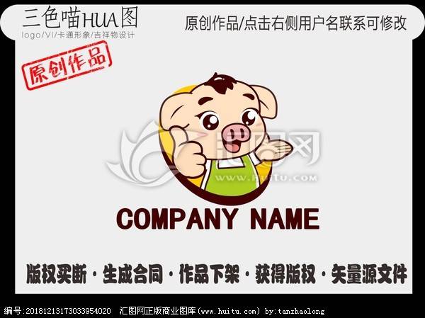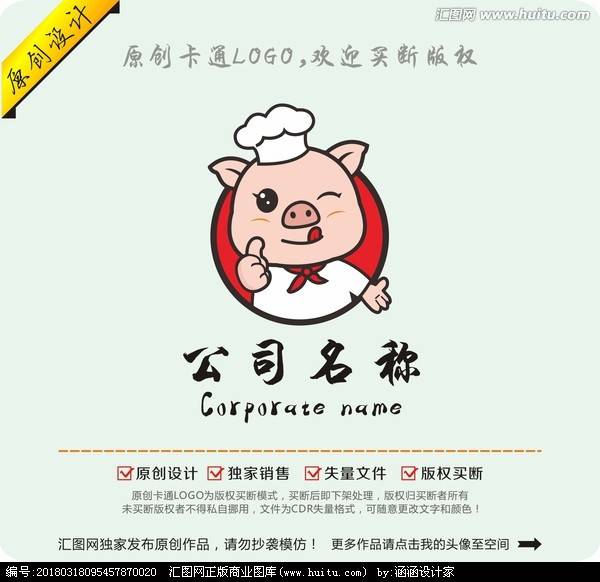 豬葛亮鮮肉卡通logo品牌商標(biāo)設(shè)計(jì)