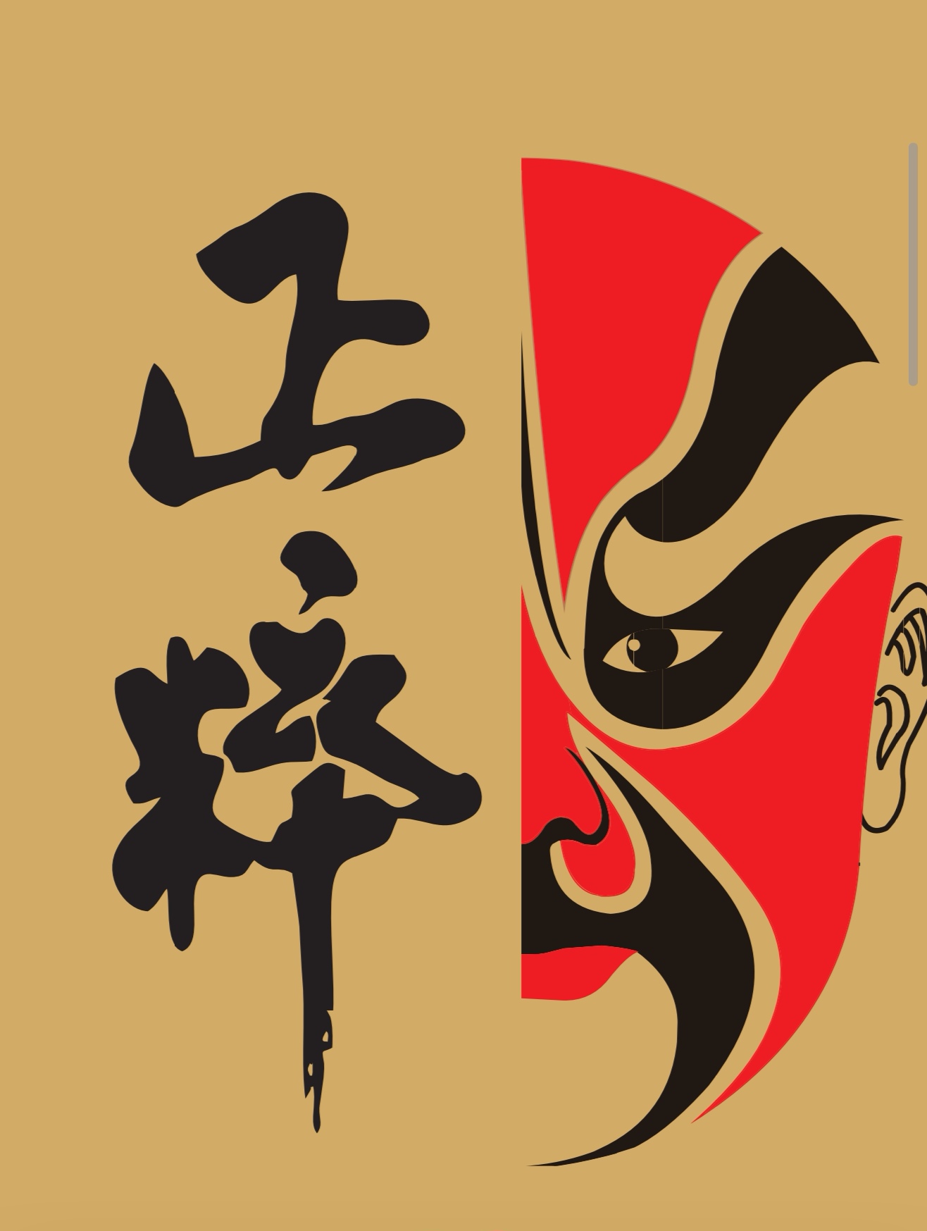 用京劇臉譜元素做為輔助圖案,正粹二字豎排,大氣,有氣勢,顯得正統(tǒng),正宗,純粹。